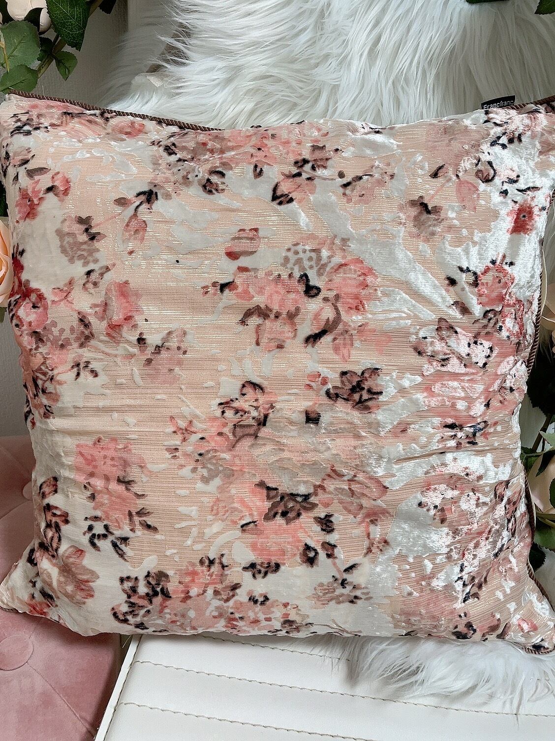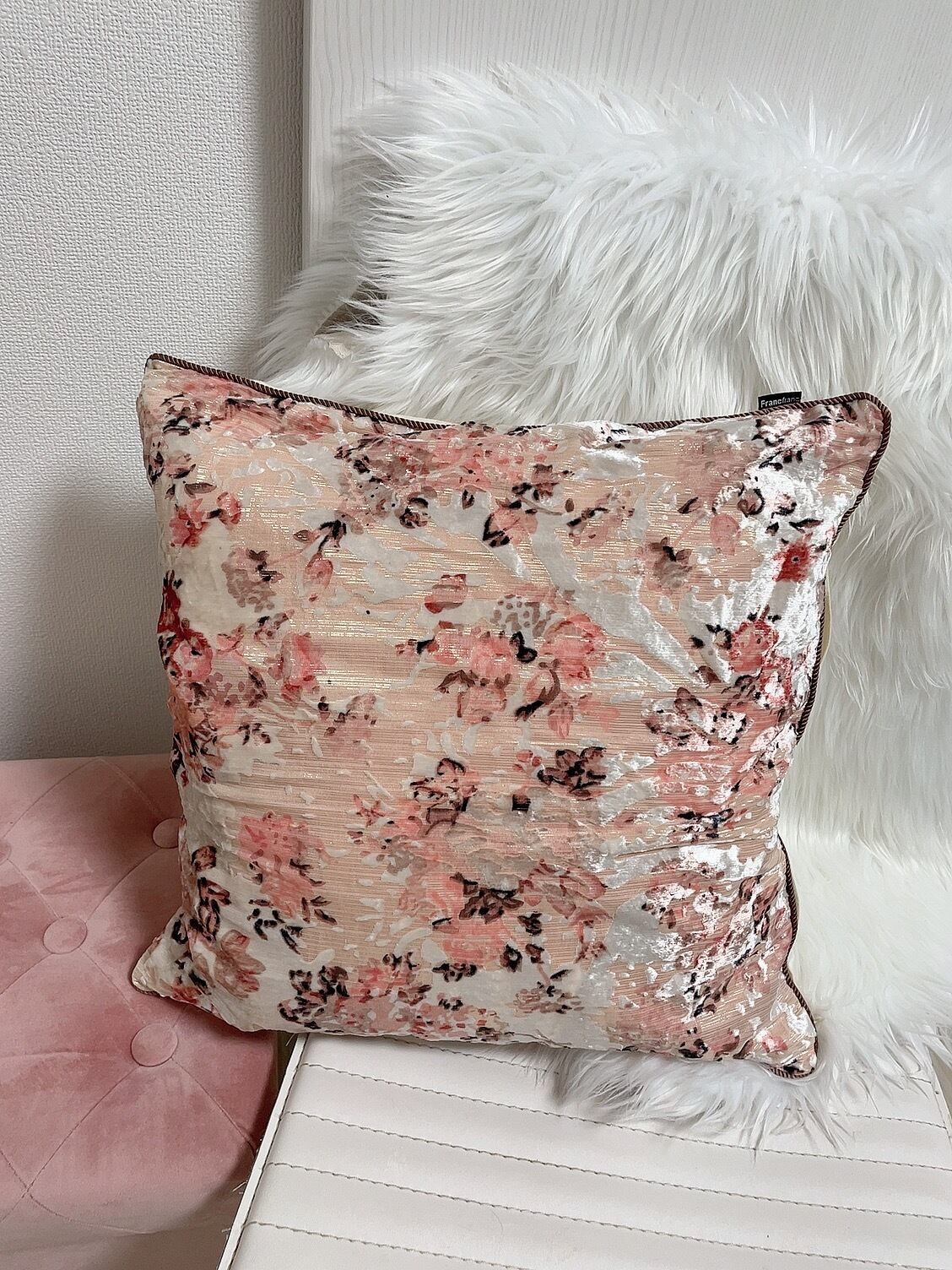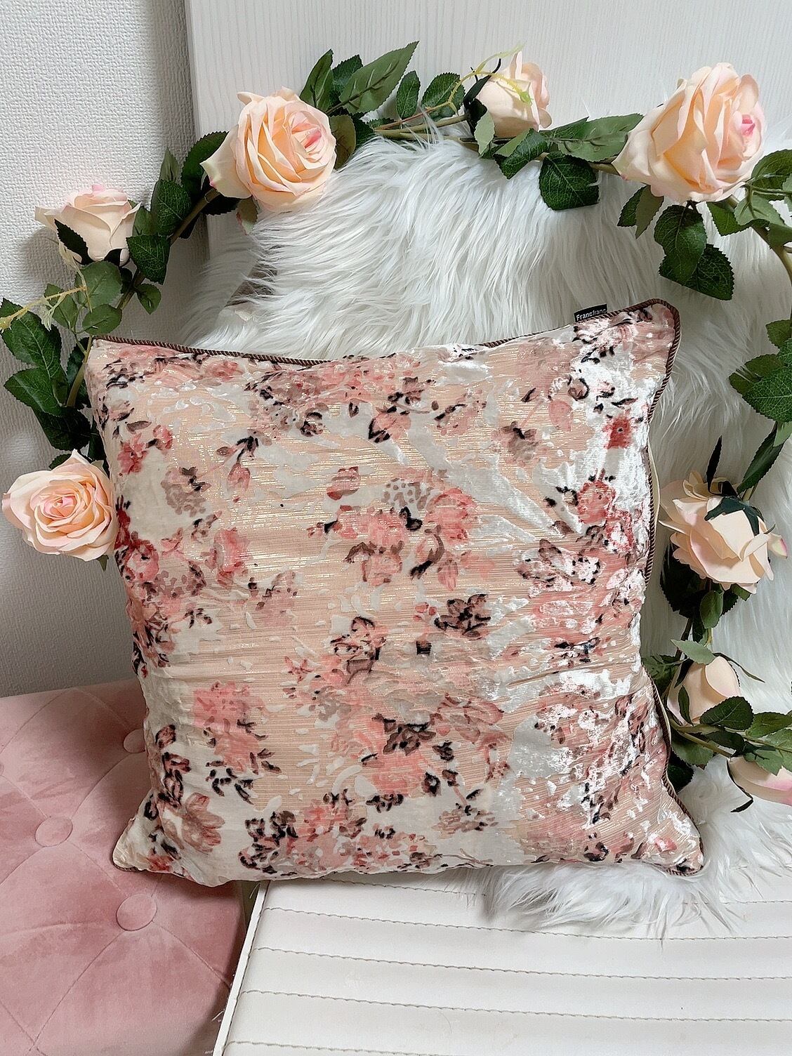 可愛いらしいピンク花柄のクッションカバーです