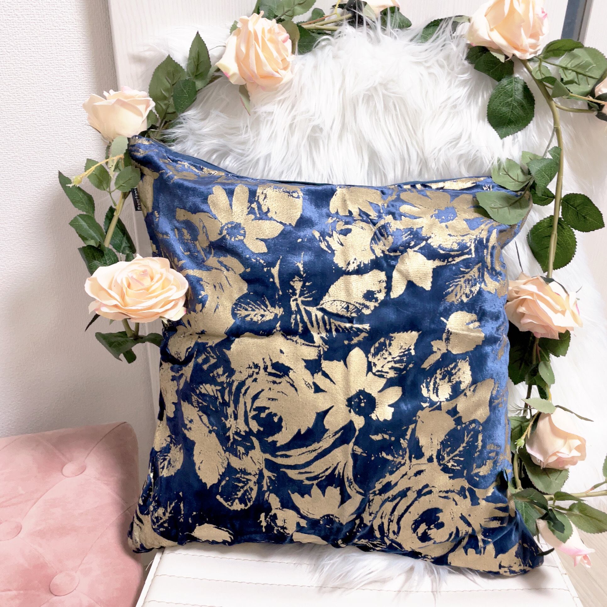 【ぺんぺんフリマ】ゴージャスクッションカバー青